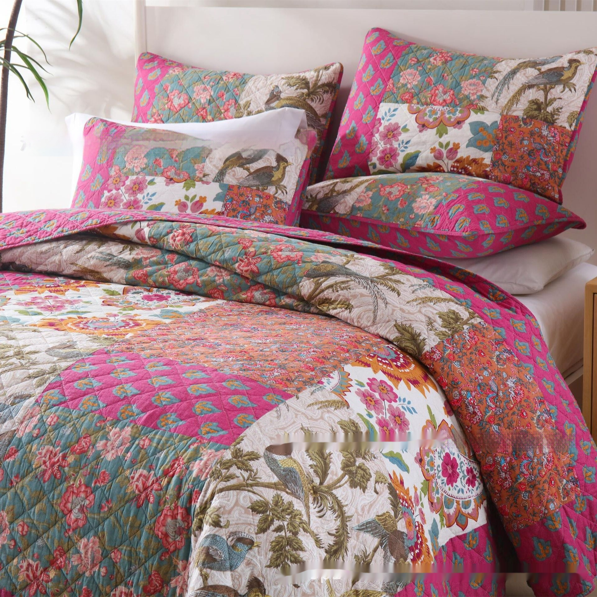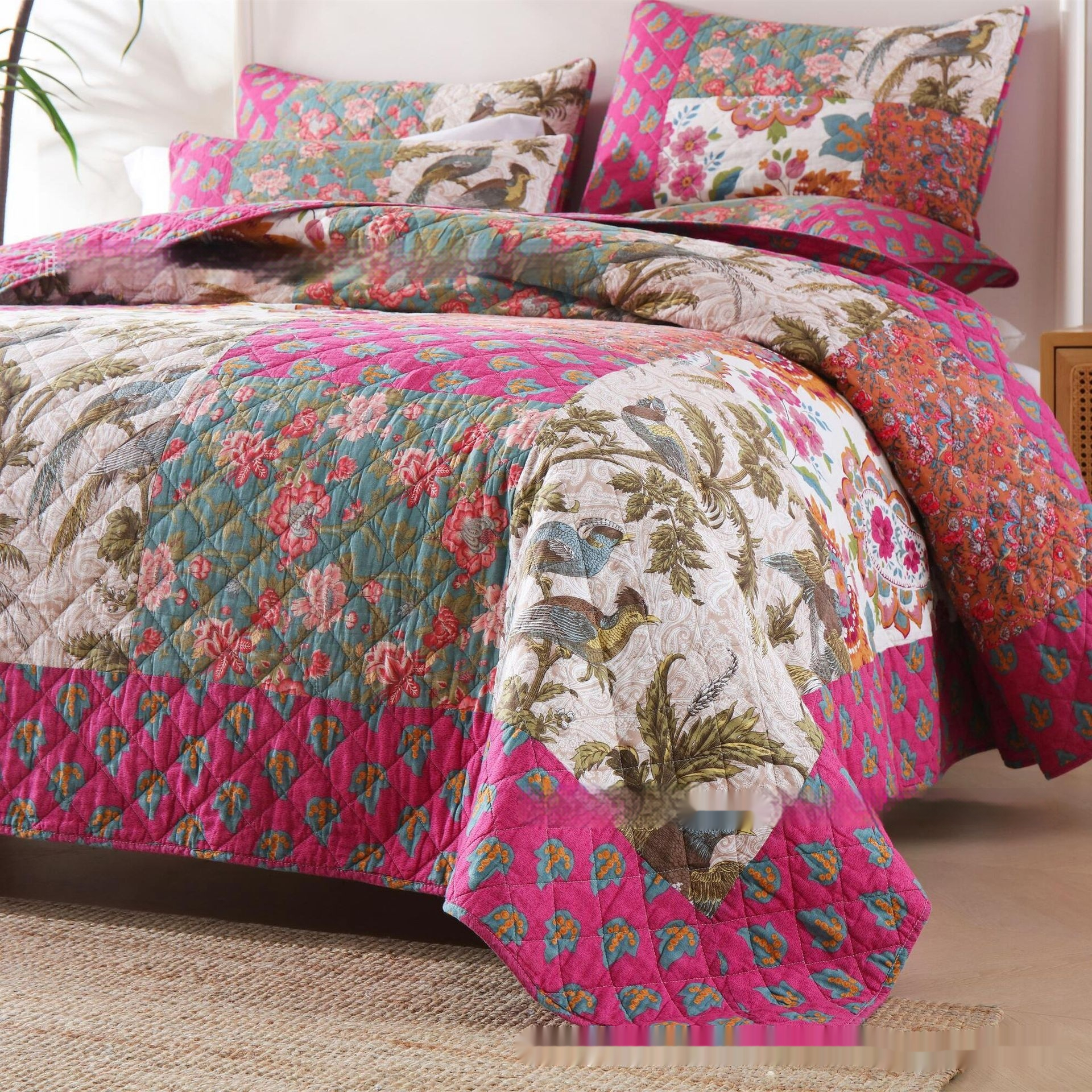 Handcraft Patchwork Quiltedtextiles Cotton Three-piece Bedding Set